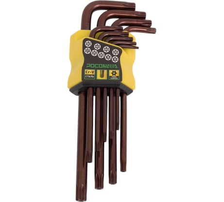 Отзыв Набор угловых ключей TORX с отверстием РОСОМАХА 9 штук (T10, T15, T20, T25, T27, T30, T40, T45, T50) 900009