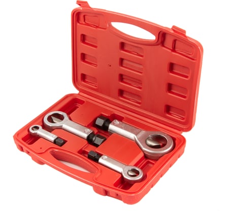 У меня лопнул шток режущей части внутри тела гайколома на первой гайке. Пытался разрубить гайки на выпускном коллекторе, но так и не смог расколоть ниодну. Возлагал большие надежды на этот инструмент но увы, с задачей не справился, может мне попался такой, но что я криворукий пока никто не говорил. Пришлось воспользоваться газом, но резьбу на шпильках всеравно частично закатал. Гайки стальные, просто были окрашены в медь.