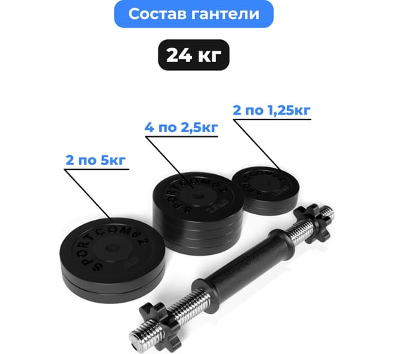 Разборная гантель BARFITS Sportcom 24 кг, 26 мм гсп24