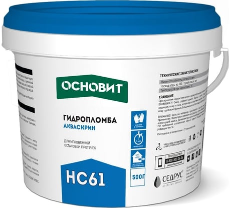 Отзыв Гидропломба Основит АКВАСКРИН HC61 0.5 кг 86670