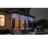 Хватило на переднюю часть веранды и чуть сбоку до колонны. Провода питания тоже точно хватило до розетки (розетка посередине гирлянды)