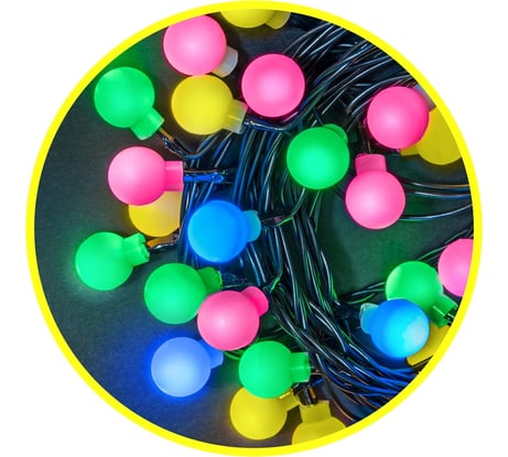 Эту гирлянду приобрели и развесили вместе с цветной гирляндой этой же фирмы. Получилось очень оригинальное украшение, которое в светлое время суток выглядит как крупные белые бусы, а в тёмное светится красивыми яркими шариками.