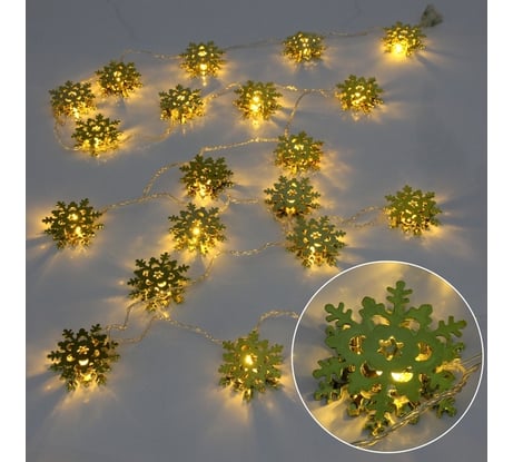 Отзыв Гирлянда для дома Серпантин "Золотая снежинка" 4м 20 ламп LED, 6,3 см прозрачный провод,1 режим, IP-20, Теплый белый (возможность соединения) 725-957