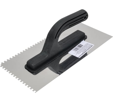 Металл очень хороший, толстый и жёсткий, такой хорошо подходит для протяжки густого плиточного клей. Но вот крепление к ручке совсем плохое. Отломалось через 20 м кв плитки. Гребёнка из леруа и то продержалась намного дольше.