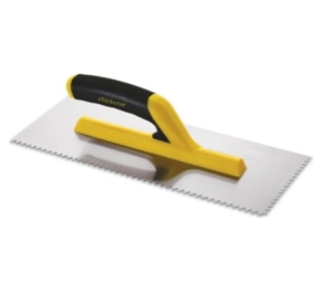 Деревянная ручка удобная и не скользит. Зубья ровные, клей распределяется аккуратно.