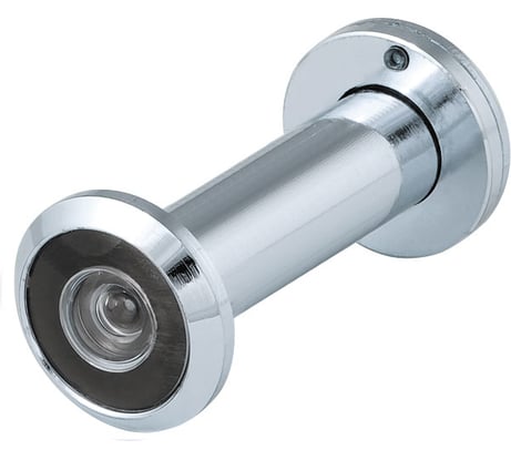 После установки двери выяснилось что родной глазок больше напоминает шёлку для двери соседей напротив. Это лучше, видно лестничную клетку если головой двигать меняя угол обзора, но далеко не 180 градусов. Даже если меньше 125мм его скрутить. Может градусов 80