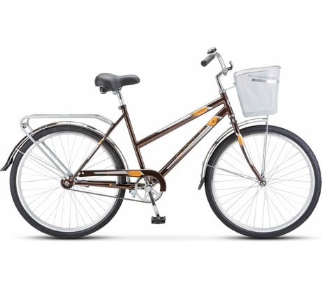 Заявлена нагрузка до 100 кг. Человек весом 125 кг ездит по дачным дорогам - без проблем. Женский он условно. Скорее Unisex. Велосипед нелегкий - 17,5 кг. Сравнительно легкий ход для колес 28' (для колес меньшего диаметра ход будет легче). Если сравнивать с советскими велосипедами, то ход немного легче чем у Салюта, но тяжелее чем у Камы. Легкость хода достигнута за счет уменьшения передаточного числа (здесь - 40Т/19Т), обратная сторона - крутить педали приходится быстрее. Шатуны 170 мм. Для женщин нормально, а вот для мужчин коротковаты. Колеса 28' позволяют ездить по дороге с мелкими неровностями, совсем не замечая их. Обода алюминиевые двойные достаточно жесткие. Высота профиля и ширина шин хороши для асфальта и дорог с более-менее твердым покрытием без больших ям. Для проселка и дорог с большими колдобинами эти шины слабы - не смогут достаточно смягчить удары, и есть риск повреждения обода. Крылья есть и даже с брызговиками. Пластиковые педали - не самые удачные, но вполне приемлемые. Тормоз ножной. Эффективность тормоза достаточная, но могло бы быть и лучше. Пластиковая защита цепи не выглядит надежной. Но пока проблем нет. Рама стальная жесткая. Размер 20' оптимален для людей ростом 175-185 см. Комплектное седло - широкое и достаточно удобное, но с довольно жесткими резиновыми амортизаторами. С пружинными амортизаторами седла Stels намного комфортнее. Сэкономили на зажиме подседельной трубы - сделали с гайкой, поэтому для регулировки нужен гаечный ключ, что неудобно. Руль вполне нормальный. Грипы достаточно удобные и сидят жестко. Багажник большой, с двумя прижимами. Достаточно прочный, но в пределах разумного. Корзина - обычная. Подставка нормальная. Насоса и нормального инструмента в комплекте нет. То жалкое подобие ключей, что идут в комплекте, можно выбросить сразу. Транспортная упаковка, в основном нормальная. Единственное замечание - очень плохо защищена от царапин рама в зоне усилителя-ручки (выше каретки). В остальном упаковка обеспечивает хорошую сохранность велосипеда при транспортировке с завода. Корзина идет отдельно. Несмотря на многолетний опыт обслуживания своих велосипедов (на бытовом уровне), у меня сборка заняла 2,5 часа. Инструкция мало того, что сделана сразу на все модели велосипедов, так еще и совершенно неинформативна. Понять по инструкции что, куда и как совершенно невозможно. Требуются гаечные ключи на 8, 10, 12, 13, 15, отвертки. Некоторые крепежи сделаны универсальными для разных моделей, что делает совершенно неочевидным их применение именно в этой модели. В общем, если собираешь эту модель в первый раз, то даже опыт сборки других велосипедов не позволяет собрать ее быстро. Прокатившись после сборки, сразу понял, что со смазкой все плохо. Пришлось разбирать втулки, каретку. Смазки там практически нет. Смазал, собрал - совсем другое дело. Цепь тоже очень плохо смазана.