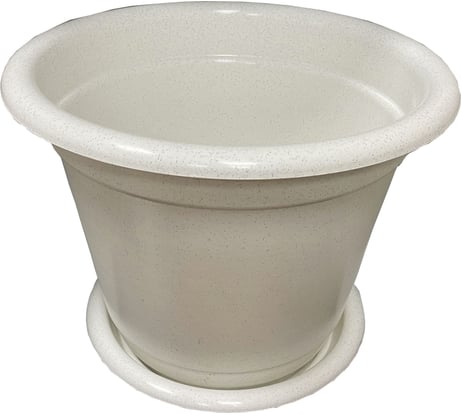Хлипкий пластик. Горшок пришел с поврежденным краем, мне это было не критично, поэтому оплатила заказ и забрала. Дома обнаружила, что в поддоне имеется сквозное отверстие. Использовать по назначению невозможно.
