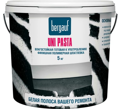 Отзыв Влагостойкая готовая к употреблению финишная полимерная шпатлевка Bergauf uni pasta, 5 кг 63413