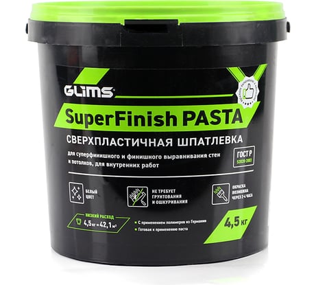 Отзыв Шпатлевка сверхпластичная SuperFinish PASTA (4.5 кг; белая) GLIMS О00009532