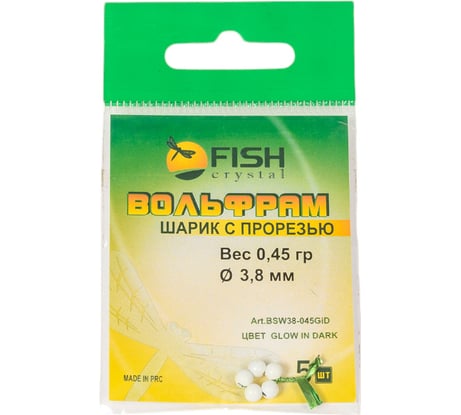 Отзыв Шарик FISHCRYSTAL вольфрам с прорезью 0.45 г, 3.8 мм, Светонакопительный 5 шт BSW38-045GiD