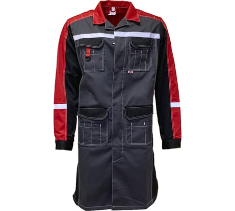 Удобный, плотный. Есть дырки в районе пояса, чтобы лазить в карманы штанов не задирая халат. Работаю в домашней мастерской. После работы все опилки остаются на халате, задница и спина остаются чистые, можно сесть в машину, если халат внутри не засран.