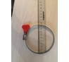 Большущий хомут. Поставляется в отдельном упаковочним пакетике с этикеткой. Максимальный размер в принципе совпадает, чуть больше (на фото видно). Металл хомута прочный. Рукоятка красная, крепкая.