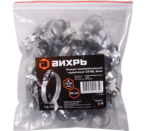 Металлический червячный хомут Вихрь 12-20, 9мм 50 шт 73/9/1/21