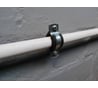 Обычный оцинкованный хомут, держать начинает с 32 мм. Дюбель 10*50, шуруп М8 под ключ 6 мм, винты М5*12.