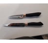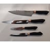 1. Подставка, имеет 4 резиновые ножки, валкая из за них. 2. На один из 4 ножей была неправильно насажена ручка. 3. Заточка неравномерная, рк абсолютно разная .