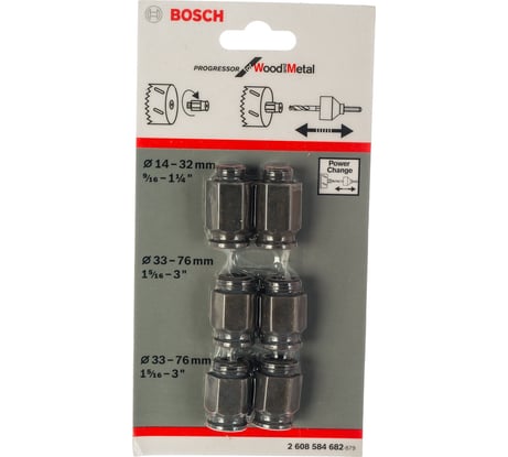 Вместе с адаптером взял «Набор переходников для коронок 6 шт. Bosch 2.608.584.682» К ним отлично подходят биметаллические коронки Энкор. С обычного хвостовика, даже при наличии специального механизма, коронку было сложно открутить после использования. Тут этот вопрос даже не рассматривается, принцип фиксации совсем иной.