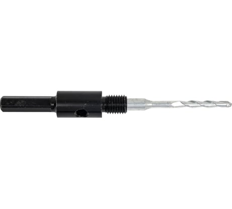 Адаптер позволяет зажимать в 13-ти мм. сверлильный патрон оснастку, имеющую внутреннюю резьбу М16, шаг 2мм. Общая длина адаптера 190мм, длина HEX хвостовика 40 мм., длина резьбы 20 мм., длина вылета сверла от резьбовой части 90 мм. Диаметр центровочного сверла 7мм, твердосплавные напайки, хвостовик сверла конусный.