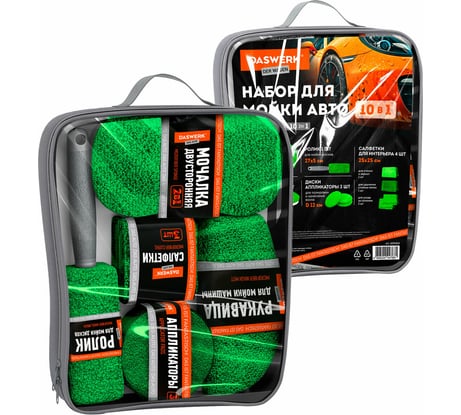 Отзыв Набор для мойки авто и детейлинга 10 в 1 DASWERK зеленый, сумка для хранения в комплекте 609484