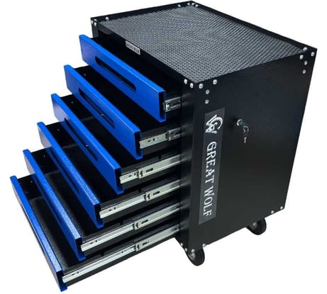 Купил данную тележку и не пожалел. Восемь вместительных ящиков позволяют организовать хранение большого количества инструментов, а боковое отделение удобно для хранения расходников, мелочевки. Тележка выполнена из прочного металла, колеса надежные, с тормозом, что обеспечивает устойчивость и мобильность. В целом, выбором доволен.