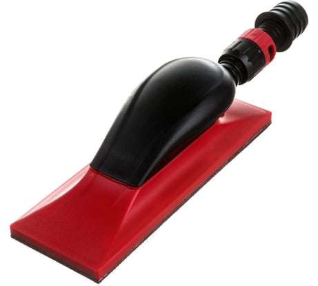 Электрические шлифмашинки как правило все имеют пылеудаление, но без ручной шлифовки тоже не обойтись и хотелось бы чтобы была возможность при этом использовать пылесос. Шлифовальный блок Русский Мастер позволяет использовать стандартные шлифовальные полоски с липучкой. С сетчатым абразивом пыль полностью засасывается в подключенный пылесос. Для соединения с пылесосом использовал кусок мягкой гофры 20 мм.