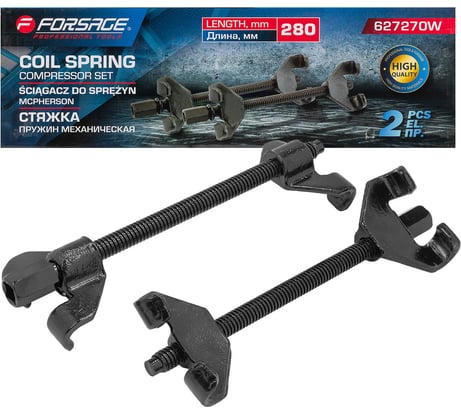 Купил для работы с подвеской разных автомобилей. Три пары захватов покрывают 99% потребностей — от небольших пружин до мощных. Пластиковые накладки не царапают покрытие, что важно. Особо порадовал рабочий диапазон: хватило для снятия как с передней стойки, так и с задних пружин внедорожника. Инструмент мощный, в кейсе хранится удобно. Рекомендую.