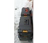 Подобной конструкции ящика у меня раньше не было (я даже не знал про такие), поэтому я просто балдю от него ))) Есть, как я понимаю, оргинал девольтовский, но стоит он в разы дороже, хотя, может быть, он и лучше. Но за эти деньги, думаю, более чем. В верхнем отсеке оставил только одну штатную перегородку на её месте, а из двух других перегородок срастил одну длинную вдоль. Получилось уложить скрутку с 16 рожковыми комбинированными ключами, из которых самый большой 34х36, 25 глубоких головок 1/2" от 9 до 34 мм, 2 удлинителя, переходник 3/4"-1/2" и карданчик, 350-граммовый тюбик графитки, 250-граммовый и 100-граммовая упаковки Литола. В нижнем отделении сбоку 200-граммовый WD-40, ещё 2 аналогичных спрея и маслёнка на 200 мл. Для масштаба положил 12-вольтовый оригинальный шуруповёрт DeWALT (вместо него потом будет аккумуляторный гайковёрт и, возможно, аккумуляторная болгарка). Со временем можно заменить пластиковые защёлки верхнего отсека на металлические.