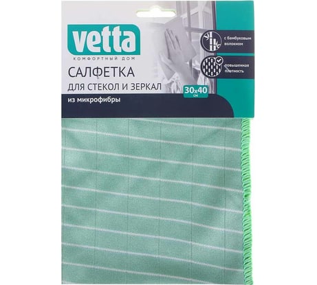 Отзыв Салфетка из микрофибры для стекол и зеркал VETTA с бамбуковым волокном, 30x40см, 300г/кв.м 448-230