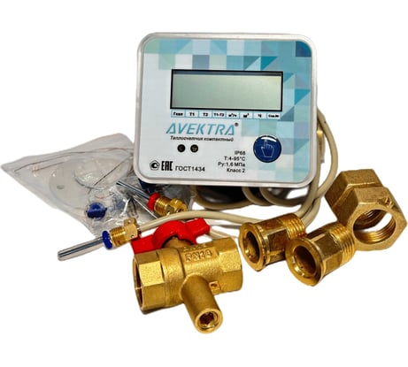 Отзыв Ультразвуковой теплосчетчик AVEKTRA ТСУ 40 Подающий трубопровод с монтажным комплектом кран с отверстием под термодатчик ДУ 40 комплект присоединителей ДУ 40 4687204444586