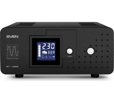 Отзыв об источнике бесперебойного питания SVEN RT-1000 Sin 600Вт, Входное 145-280В, 2хCEE7/4 розетки, клеммы для внешних АКБ LCD SV-013110