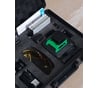 Линия зелёного цвета отчётливо видна даже при яркой освещённости в помещении. На креплении магнит довольно сильный, на металлических поверхностях держит очень хорошо. Жесткий чехол хранения.