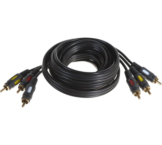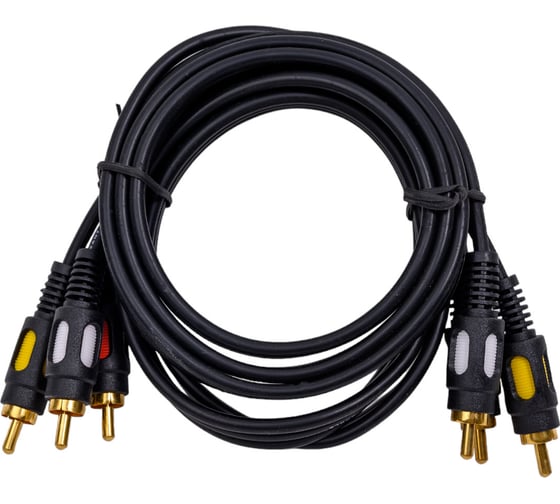 Аудио-видео шнур REXANT 3RCA-3RCA, 1,5 м, черный 17-0202