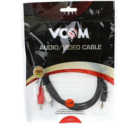 Аудио кабель GCR 1.5m 3хRCA / 3хRCA, GOLD, черный, VIV51I820