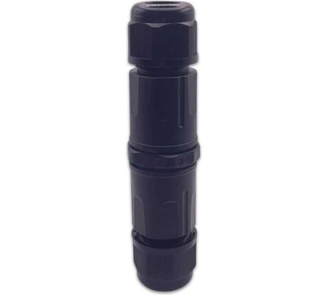 Быстроразъемная кабельная муфта IP68 для улицы. Подходит для уличного освещения, подходит для питания во влажных помещениях. Сальники с гайками M20x1.5, можно пропустить кабели диаметром от 5 до 11мм. Уплотнители сальников и прокладка корпуса из синего силикона. Клемма внутри разборная, в каждую винтовую колодку входят 2 жилы по 1.5мм2. Пластик нормального качества, не хрупкий. Колодки клеммы слабо магнитятся. Винты шлицевые, магнитятся хорошо. Длина муфты около 85мм, диаметр 27мм.