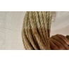 Прекрасная скрутка, форму в изделиях держит чётко, концы очень хорошо запаиваются термоклеем, если кому важно. И он совсем не ворсистый, ровный, без мусора (кто работает с джутом знает, насколько он бывает засорения всякими включениями). Брала на пробу, теперь думаю заказать тот что по 200 м. Он того стоит. И в изделиях себя выгодно окупает