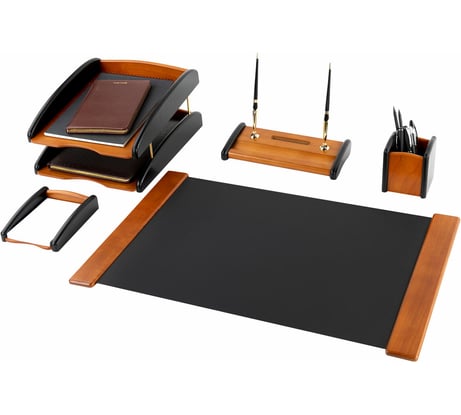 Очень стильный набор, который отлично вписался в мой рабочий стол. Все элементы продуманы, удобно использовать каждый день. Особенно радуют часы и двойной лоток для документов.