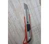 Недорогой канцелярский нож с лезвием 25 мм. Увесистый. В руке лежит надежно. Лезвия менять совсем просто. Фиксатор лезвия на резьбе.