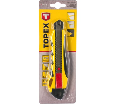 100% копия ножа Stanley. Однако Stanley выглядит лучше, сделан безупречно и немного тяжелее по сравнению с Topex. Правда там и цена в два раза выше. Тем, кто ругает систему замены лезвия - подбираете нож под свои задачи. Этот для резки твердого материала, лезвие не люфтит, зажимается намертво, давить можно сильно. Лезвие скорее сломается, чем уйдет внутрь.