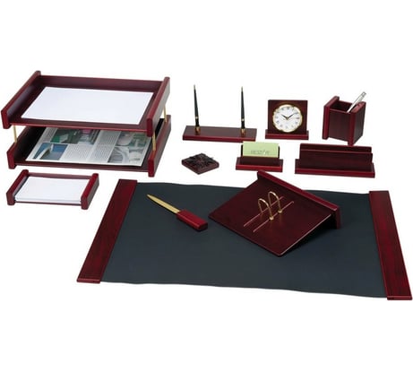 Очень стильный и удобный кабинетный набор, все продумано и сделано качественно. Особенно понравился коврик для письма и часы — смотрятся достойно.