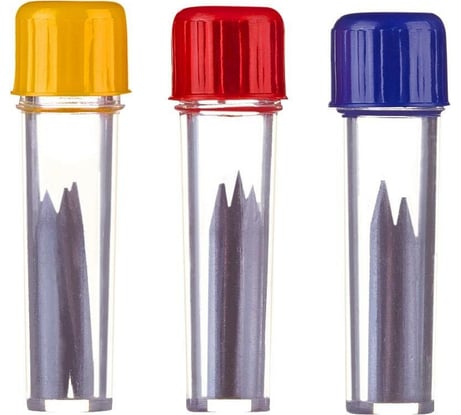 Грифели качественно сделаны. В блистере три прозрачных пенала с тремя грифелями в каждом. Пеналы закрыты крышками разного цвета. Желтая, красная и черная. На фото в описании показаны другие цвета. Я предполагал, что разный цвет крышек говорит о разной твердости грифелей. А в описании указана только одна твердость HB. Но оказалось, что у всех девяти грифелей действительно одна твердость. Твердость грифелей похожа на HB, но рисуют они ярко, как B. Для чего разный цвет крышек я так и не понял. Мне грифели понравились. Рекомендую.