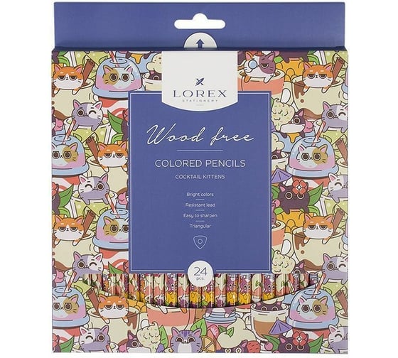 Набор цветных карандашей LOREX WOOD FREE COCKTAIL KITTENS 24 цвета, трехгранные LXCPWF24-CK