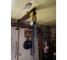 Работает с огромным шумом, цепь гремит как в последний раз, по балке двигается еще громче.