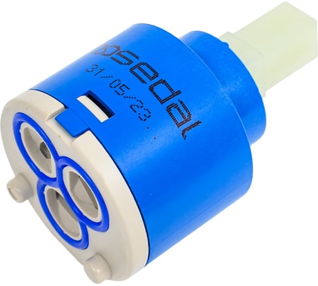 Обычно из опыта знаю, что через какое-то время в современных однофлажковых смесителях обязательно начинает просачиваться вода под рычагом. Вот и мой смеситель после шести лет службы не миновала эта участь. Фирменный картридж синего цвета с логотипом, а здесь приобрел картридж без каких либо надписей.