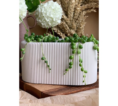 Достоинства: Кашпо очень стильное! Продавцу большое спасибо за скидки!