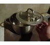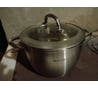 Неплохая кастрюля. Крепкое дно - как-то я оставил кастрюлю на плите, не выключив, и дно аж накалилось докрасна. Обошлось, всё с кастрюлей нормально. Со временем появились точки, пятнышки на дне, но я не обращаю внимания - так понимаю, это у всей индукционной посуды. При полном заполнении кастрюли до верха (4,5 л) закипает за 20 минут на полной мощности плиты. Минус - крышка, ею нельзя призакрыть кастрюлю наполовину, крышка не держится и спадает. Либо полностью закрывать, либо вообще снимать. На последнем фото пример другой кастрюли, у которой благодаря большим плоским ручкам крышка спокойно лежит в полузакрытом положении. Здесь так не получится.