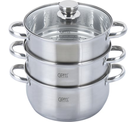 Отзыв Пароварка двухъярусная GIPFEL SALINA 24x12,5 см, 24x10 см х 2 шт/5 л с капсульным индукционным дном нержавеющая сталь 18/10 толщина: 0,6 мм / 2,5 мм 1309