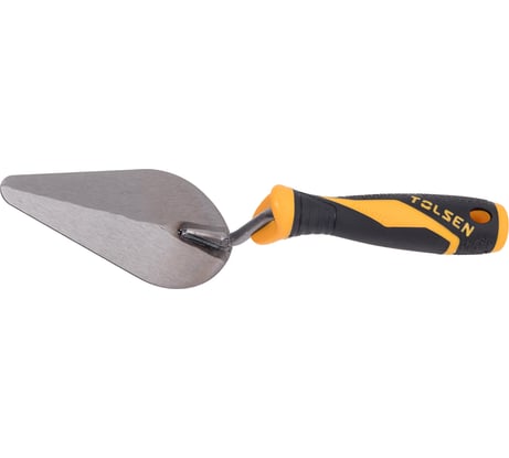 Рукоятка эргономичная , очень удобная , не скользит в руке . Металлическое полотно кельмы очень прочное, жесткое , не гнется даже если поиложить усилие . Кельма изготовлена качественно, соединительный элемент кельмы приварен надежно и ровно .