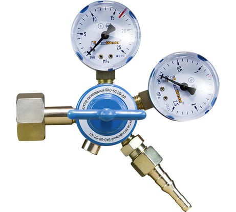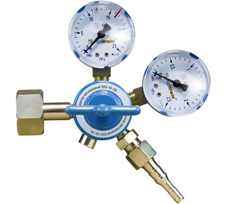 В меру упругий вентиль. Удобно регулировать. Очень точно регулирует подачу кислорода, хорошо поддерживает давление. Правильное расположение манометров. Прикрутил к манометру - шланг вниз, манометры наверху.