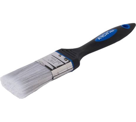 Неплохая кисть, с плотно набитой синтетической щетиной. Скошенный срез удобен в работе..