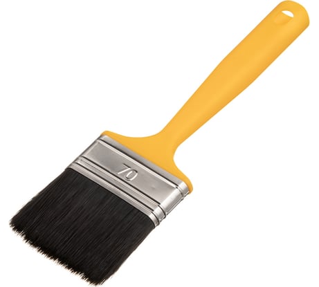 Часто покупаю недорогие кисти и практически никогда не отмываю после использования, выбрасываю. Эта кисть - исключение и огромное удивление. Очень понравилась - отмыл. Щетина искусственная, мягкая и одновременно достаточно упругая, не сыпется. Перед использованием не промывал, но в процессе использования не выпало ни одного волоска. Очень равномерно наносит краску. Тонкие щетинки и их реально много - забор краски отличный, не полосит. Бандаж - прочный, ручка - пластиковая, пустотелая. Несмотря на небольшой размер, кисть отлично справилась с окраской нескольких досок шириной около 100мм. Кистью наносил укрывное масло. Масло присутствует только в названии (100% акриловая и алкидная смолы). Рекомендую.